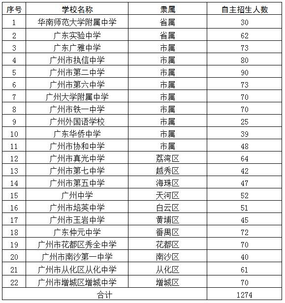 答:今年全市共有22所示范性普通高中试行自主招生,招生总计划1274个,其中省、市属示范性普通高中11所,招生计划共660个,面向全市招生;区属示范性普通高中11所(每区1所),招生计划共614个,面向本区招生。具体情况如下: